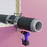 Place the fireproof collar on the pipe insulation. In case of collars with a diameter of CC-125 and larger with a segmented cover S, first wrap the pipe four times with an intumescent insert and then put the steel cover on it